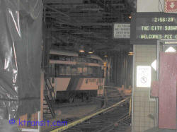 ![]() Bunting drapes the stairs leading to the subway mezzanine at Newark Penn Station. |