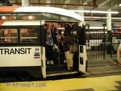 ![]() PCC # 9 unloading passengers at Newark Penn Station. |