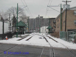 This is the Silver Lake stop on the line. Note that LRV's only use the right track for yard moves shown by the snow. (1/21/02)
