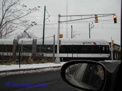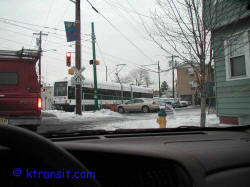 LRV crossing Belmont one of three new grade crossing on the Subway bringing the total to 4. (1/21/02)